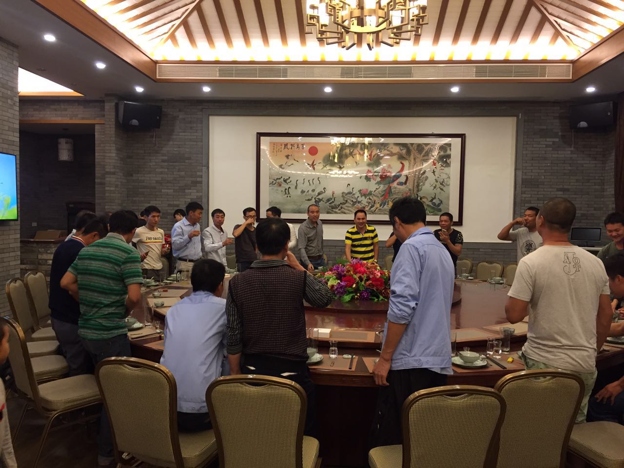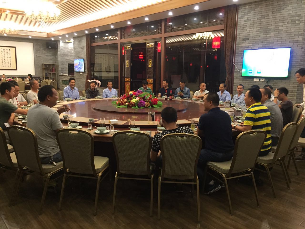 2016年9月30日晚,我司組織迎國慶晚宴,此次晚宴面向公司全體在職員工,但是由于假前高峰,工程部一部分人未能參加,小編表示非常可惜,晚宴開始之前,大家都在熱烈的談論著放假安排和一些收尾工作。公司總經理表示,此次晚宴旨在慶賀“深圳市華萬工業園觀光電梯項目”和“深圳市藍堡公寓加裝電梯項目”完工,但更多的是偉大祖國的繁榮昌盛!也是借此機會,放松一下長久以來緊繃的心弦,做到勞逸結合!